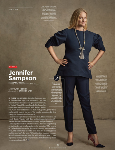 In this month’s issue of the D CEO Magazine, Jennifer Sampson wore one of the very first Akola for Neiman Marcus pieces in D CEO’s “My Style” feature. Akola is honored to have the support of Jennifer Sampson and the rest of United Way! We owe a large portion of our Dallas based program success to our incredible partnership with them.