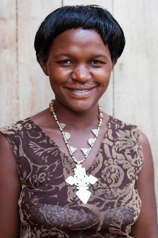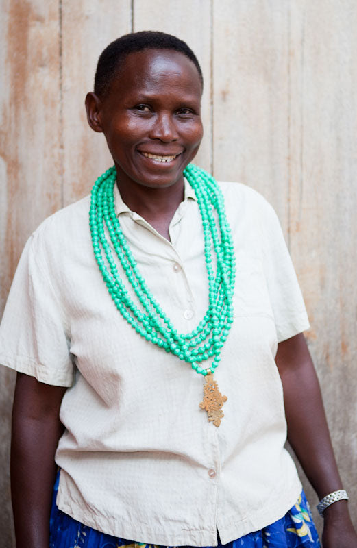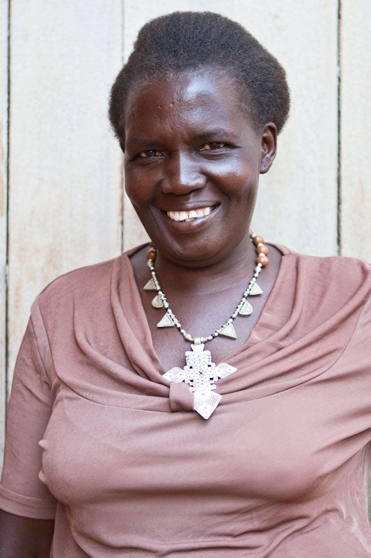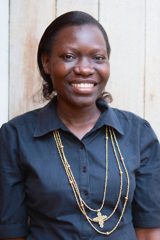 Charity comes from Kabala, a village in the Southern region of Uganda. After finishing grade school, Charity worked with Uganda Textiles. She joined the Akola Project at its birth in 2010, and in 2012, was promoted to Nabukosi Group Supervisor with Hellen to teach and oversee jewelry production in Akola’s village jewelry group. Showing her leadership and dedication to the mission of the empowerment programs, Charity was promoted to staff as the Ministry and Wellness Assistant in 2015. While Charity is away from work, she is singing and dancing at her church, thinking up new small business ideas, taking classes at the Busoga Bible School, and tending to her seven pigs and 35 chickens. Her favorite part about working with Americans is their desire to work hard, be time conscious, and be friendly to all. She enjoys sharing the good news with the women and being able to pay for school fees for her five children, including putting two of them through university, with her earnings and savings.